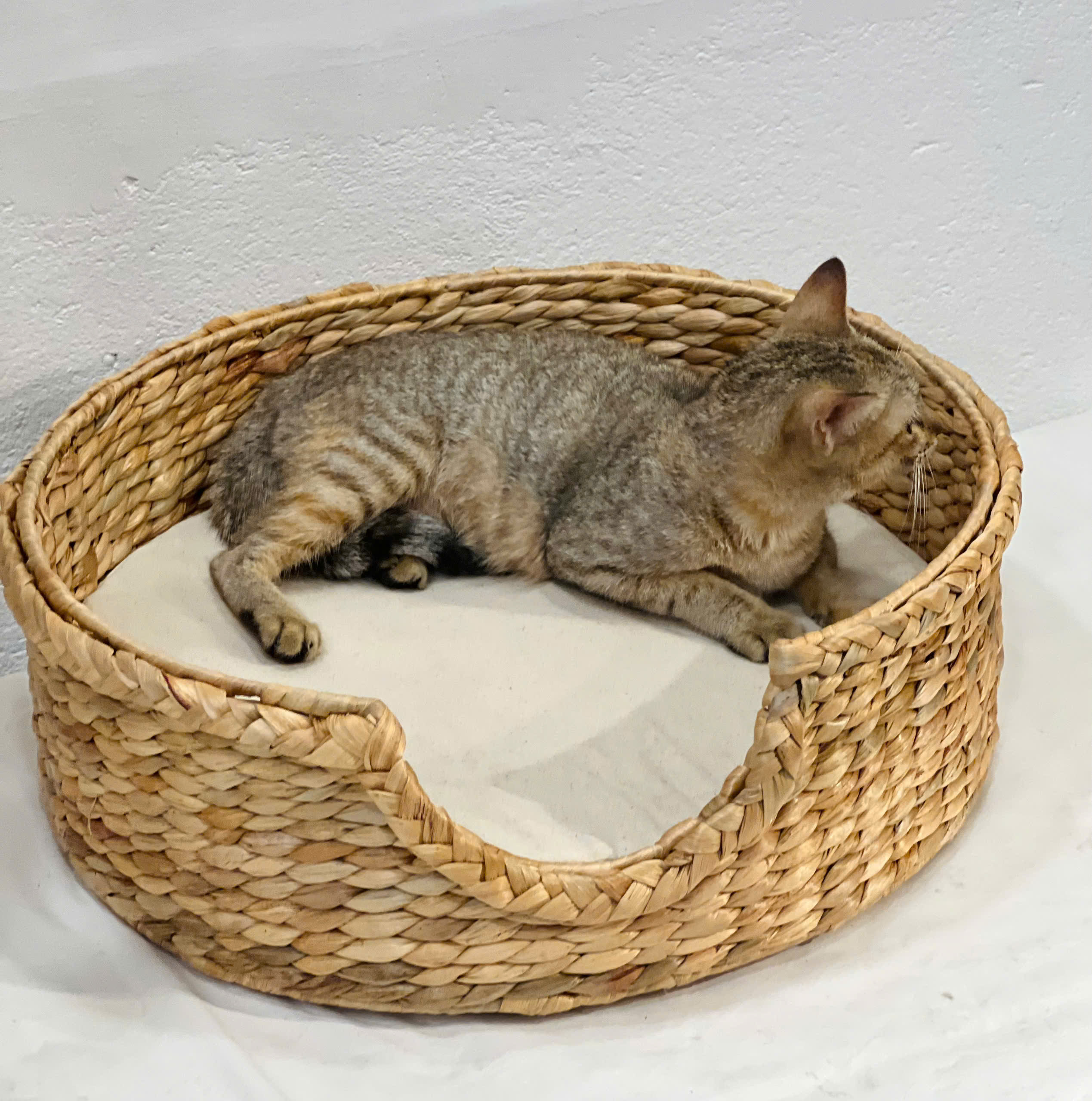 Nhà mèo bằng lục bình là một sản phẩm thủ công đơn giản nhưng tinh tế, được thiết kế dạng khay tròn, mang lại cảm giác gần gũi và ấm áp cho thú cưng trong không gian sống của bạn.